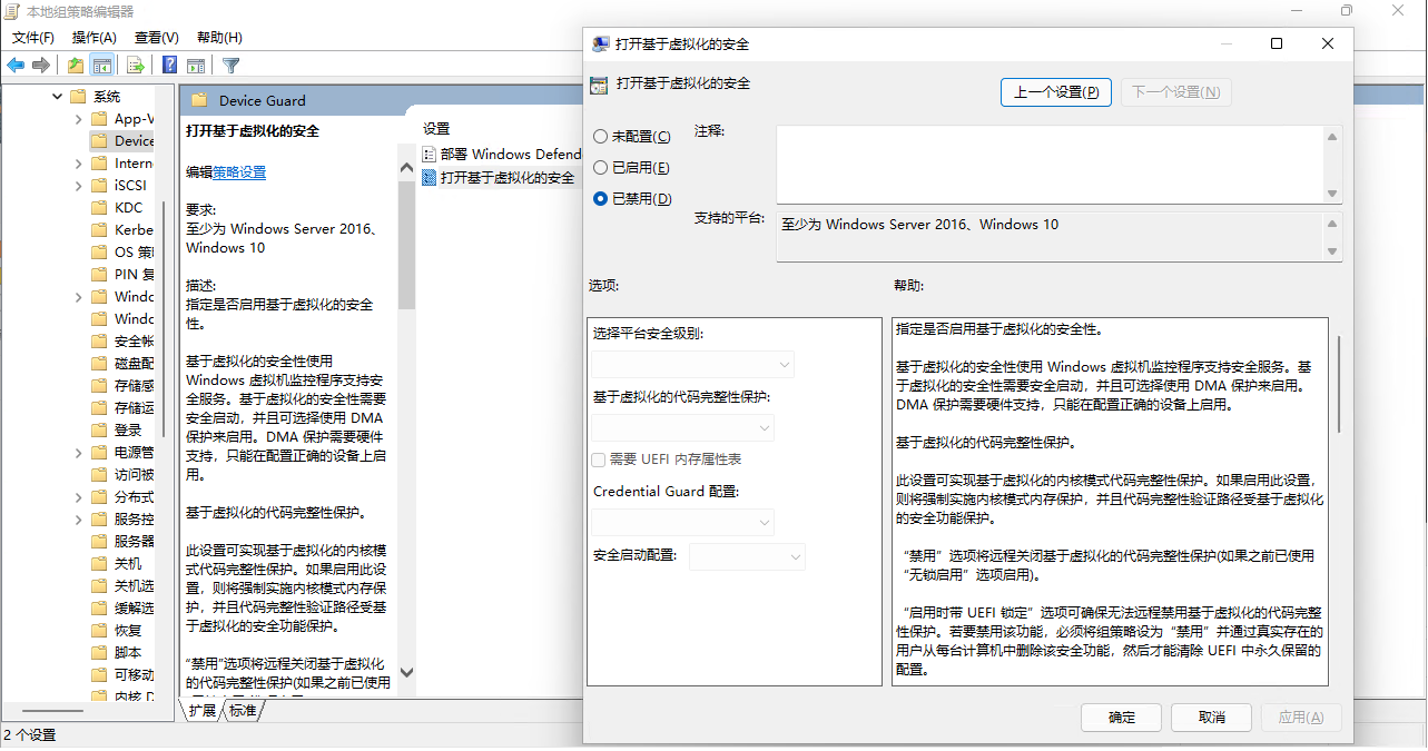 禁用【打开基于虚拟化的安全】